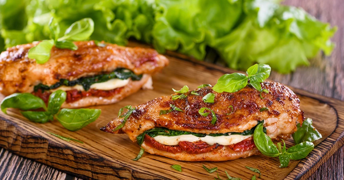 Κοτόπουλο γεμιστό με σπανάκι, μοτσαρέλα και λιαστή ντομάτα