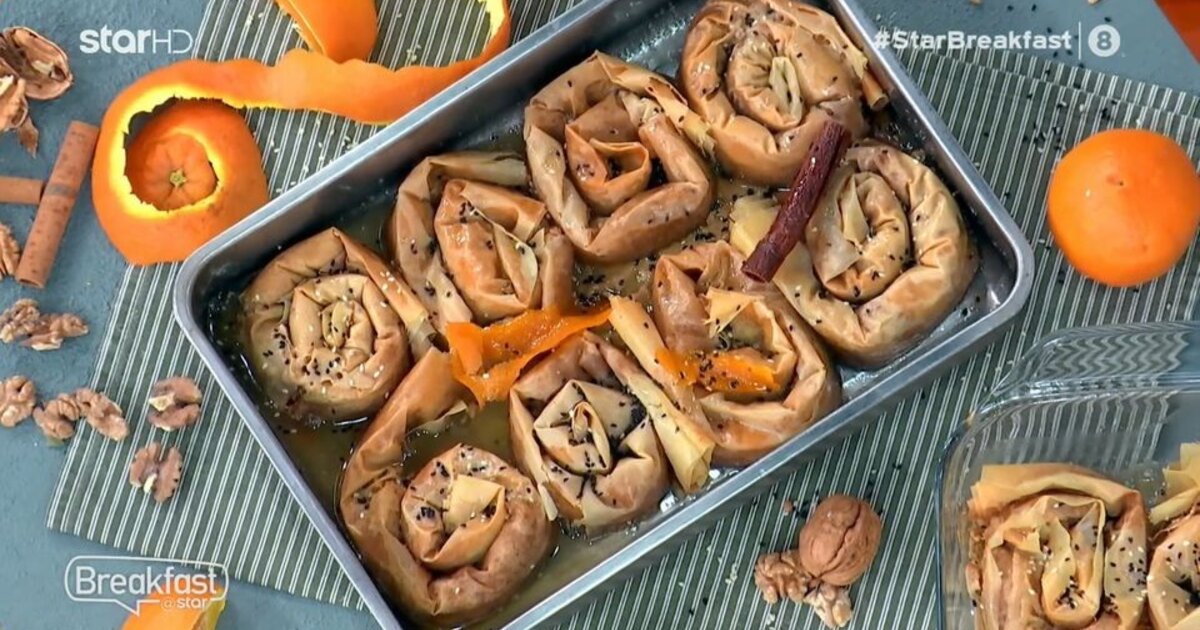 Υλικά για το σιρόπι: 200 γρ. νερό, 150 γρ. κρυσταλλική ζάχαρη, 1 ξυλάκι κανέλα, ½ πορτοκάλι τις φλούδες.