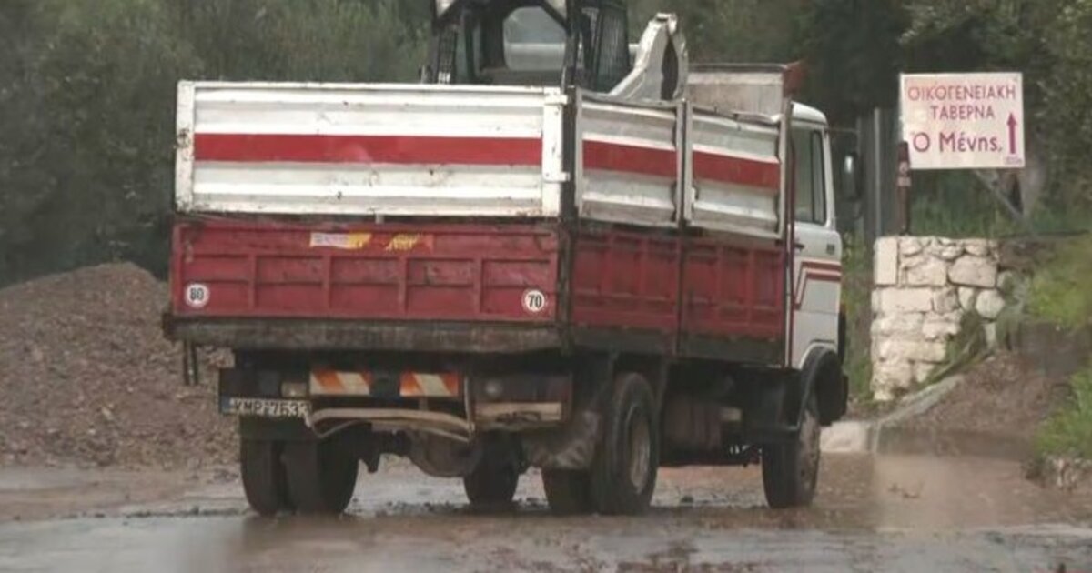 Στην περιοχή Πήδημα και Αρφαρά οι δρόμοι πλημμύρισαν και γέμισαν με λάσπες, ενώ εργαζόμενοι με μηχανήματα του Δήμου προσπαθούν να αποκαταστήσουν τις ζημιές.
