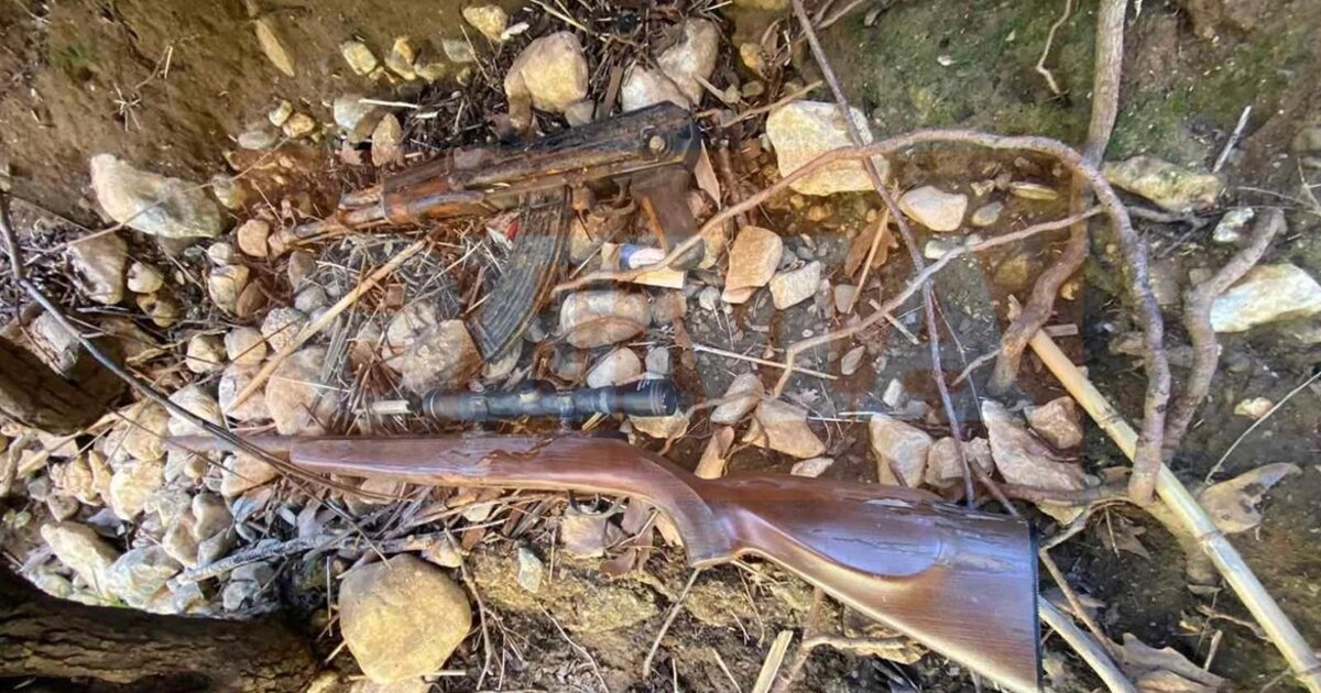 Σύμφωνα με πληροφορίες, στα ευρήματα περιλαμβάνονται ένα καλάσνικοφ, ένα όπλο με διόπτρα, καθώς και κουτί με σφαίρες.
