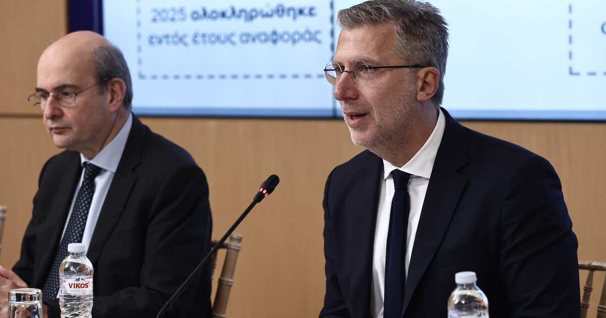 Τον κυβερνητικό προγραμματισμό για το 2026, μέσα από ένα πακέτο 30 μεταρρυθμίσεων και έργων, παρουσίασαν ο αντιπρόεδρος της κυβέρνησης Κωστής Χατζηδάκης και ο υπουργός Επικρατείας Άκης Σκέρτσος, στο πλαίσιο της συνέντευξης Τύπου με θέμα «Απολογισμός κυβερνητικού έργου για το 2025 – Ενοποιημένο σχέδιο κυβερνητικής πολιτικής 2026», μαζί με τον υφυπουργό παρά τω πρωθυπουργώ Θανάση Κοντογεώργη και τη γενική γραμματέα Συντονισμού Εύη Δραμαλιώτη.