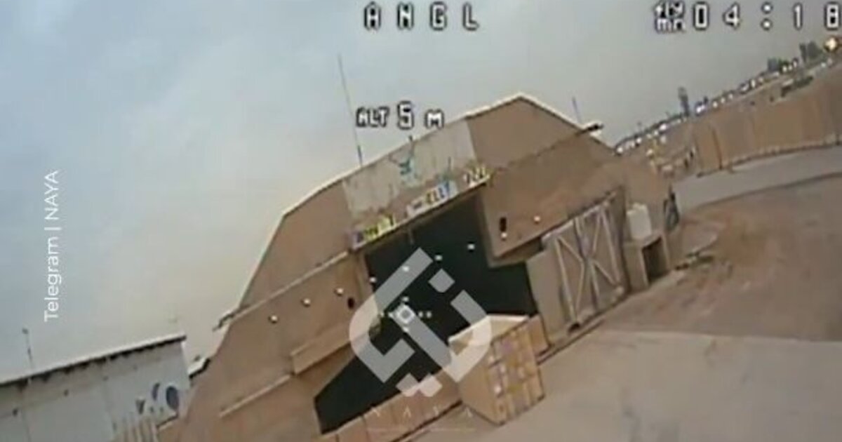 Στο βίντεο φαίνεται το drone να εισβάλει στην στρατιωτική βάση και να καταγράφει πλάνα από τις εγκαταστάσεις, πριν πέσει πάνω σε ένα κτίριο και ανατιναχθεί.