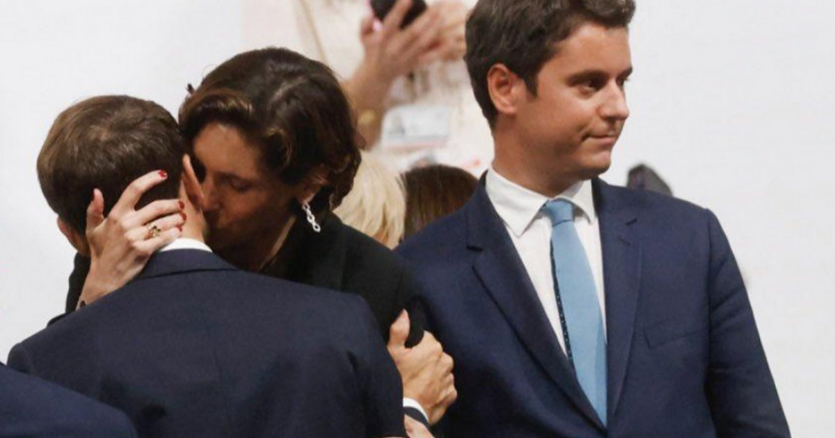 Ο Γάλλος πρωθυπουργός Γκαμπριέλ Ατάλ φαίνεται να κοιτάζει κάπως αμήχανα.