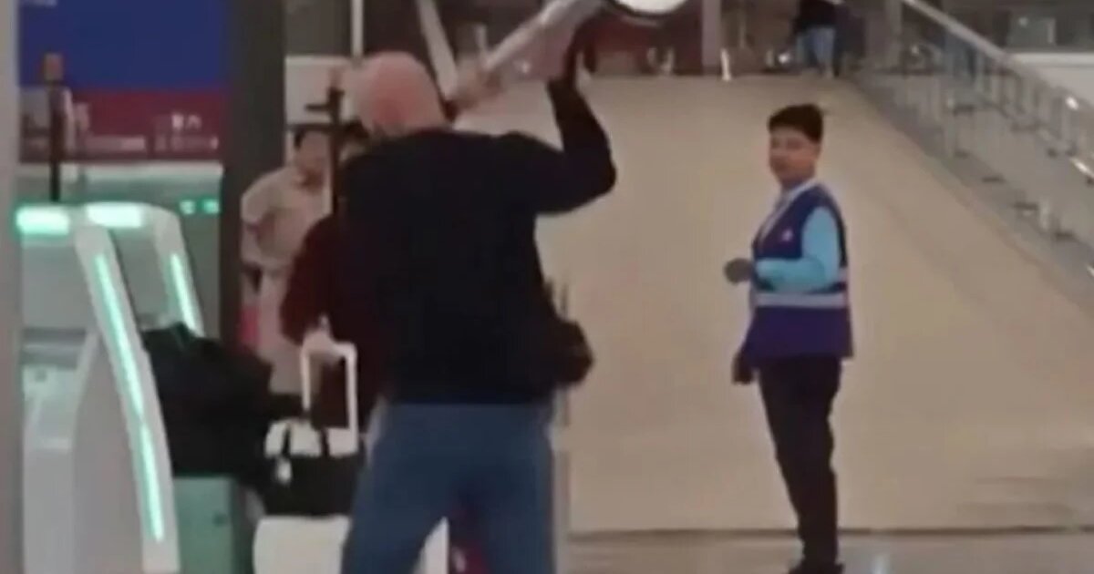 Σε βίντεο που κατέγραψε τη μανία του, ο τουρίστας φαίνεται να πλησιάζει τα αυτόματα μηχανήματα check-in και να τα ανατρέπει το ένα μετά το άλλο, ενώ στη συνέχεια χρησιμοποίησε έναν μεταλλικό στύλο για να χτυπήσει με σφοδρότητα ένα από τα πεσμένα μηχανήματα.