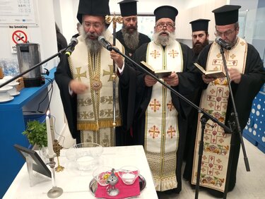 Τον καθιερωμένο Αγιασμό τέλεσε ο Σεβασμιώτατος Μητροπολίτης Ρεθύμνης και Αυλοποτάμου κ. Πρόδρομος και παρέστησαν η Γραμματέα της Αποκεντρωμένης Διοίκησης Κρήτης κ. Μαρία Κοζυράκη, εκπρόσωποι των θεσμικών Αρχών, των Σωμάτων Ασφαλείας, του Στρατού και φορέων της πόλης.
