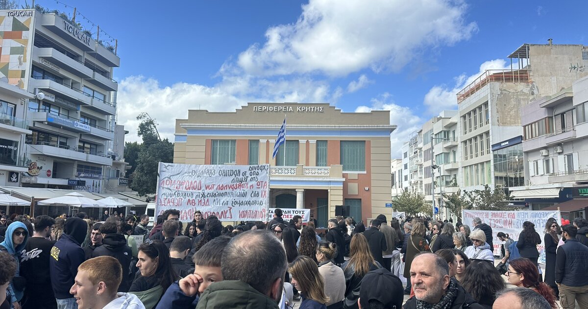 "Εκατοντάδες διαδηλωτών από όλο το Ηράκλειο βρίσκονται στην Πλατεία Ελευθερίας στην απεργιακή Συγκέντρωση και το Συλλαλητήριο που διοργανώνουν τα συνδικάτα και οι μαζικοί φορείς για τα 3 χρόνια από το έγκλημα στα Τέμπη. Το σύνθημα που δεσπόζει : « Ή τα κέρδη τους ή οι ζωές μας».