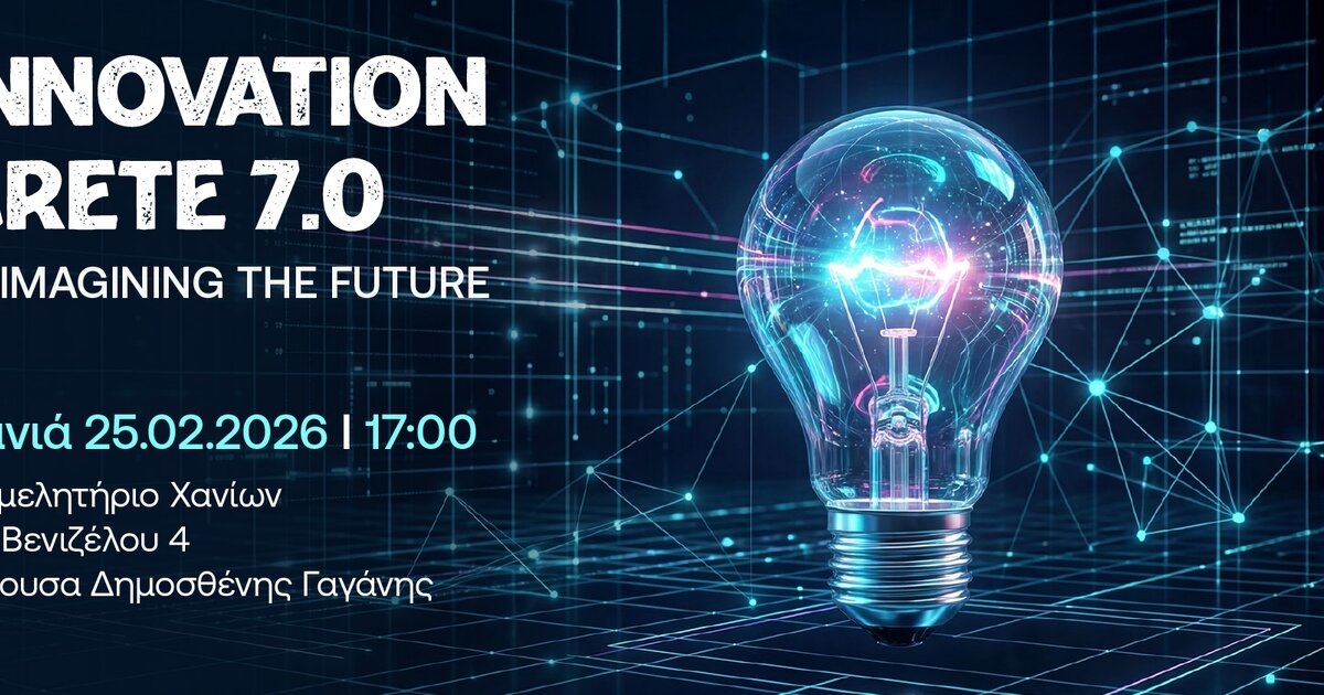 Στην εκδήλωση «Innovation Crete 7.0. Reimagining the Future», η οποία θα πραγματοποιηθεί την Τετάρτη 25 Φεβρουαρίου και ώρα 16:30, προσκαλεί το κοινό το Επιμελητήριο Χανίων.