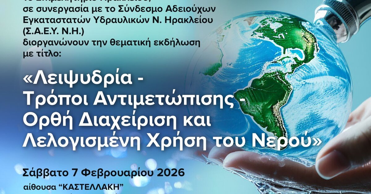 Επιμελητήριο Ηρακλείου: Εκδήλωση για τη Λειψυδρία και την Ορθή Διαχείριση του Νερού