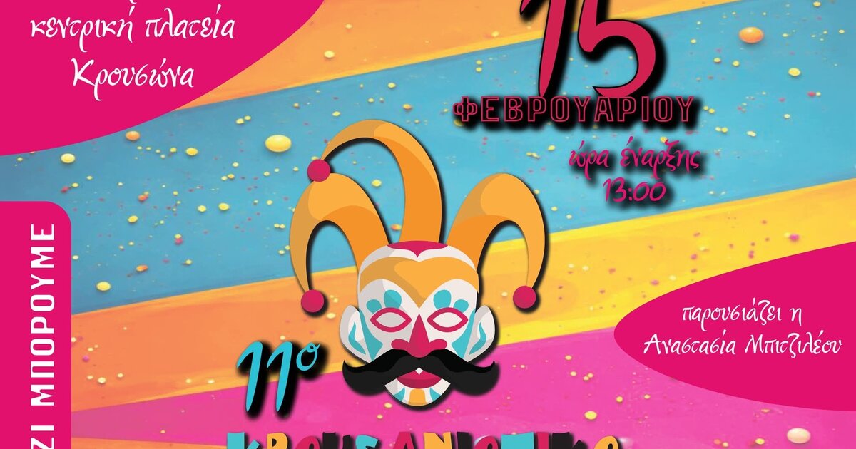 Ο Κρουσώνας ετοιμάζεται να φορέσει τα αποκριάτικά του και να υποδεχτεί το 11ο Κρουσανιώτικο Καρναβάλι, την Κυριακή 15 Φεβρουαρίου 2026, σε μια μεγάλη γιορτή χαράς, δημιουργικότητας και συλλογικότητας.