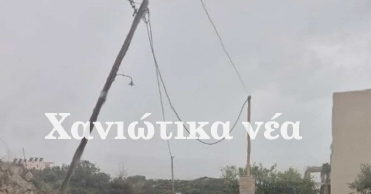 Χανιά: Στύλος του ΔΕΔΔΗΕ μετακινήθηκε από τους ισχυρούς ανέμους