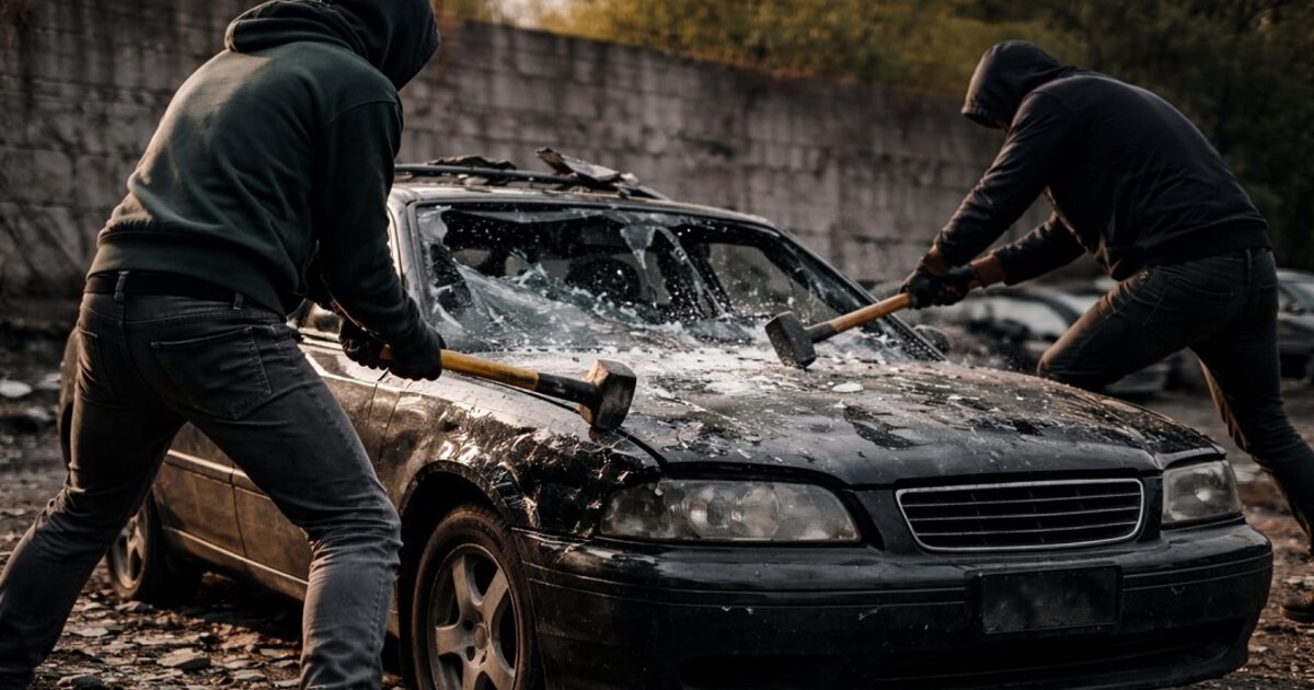 Πριν προλάβουν να αντιδράσουν, δύο άτομα πετάχτηκαν από το ύποπτο όχημα και άρχισαν να τους επιτίθενται με τα χέρια, ενώ ο ένας κρατούσε βαριοπούλα, με την οποία επιχείρησε να χτυπήσει έναν από τους δύο άνδρες. Το χτύπημα αποφεύχθηκε την τελευταία στιγμή και η βαριοπούλα κατέληξε στο πίσω δεξί μέρος του λευκού Peugeot τους.