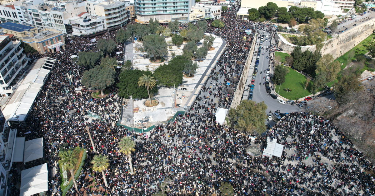 Ηράκλειο: Συλλαλητήριο για την επέτειο της τραγωδίας των Τεμπών