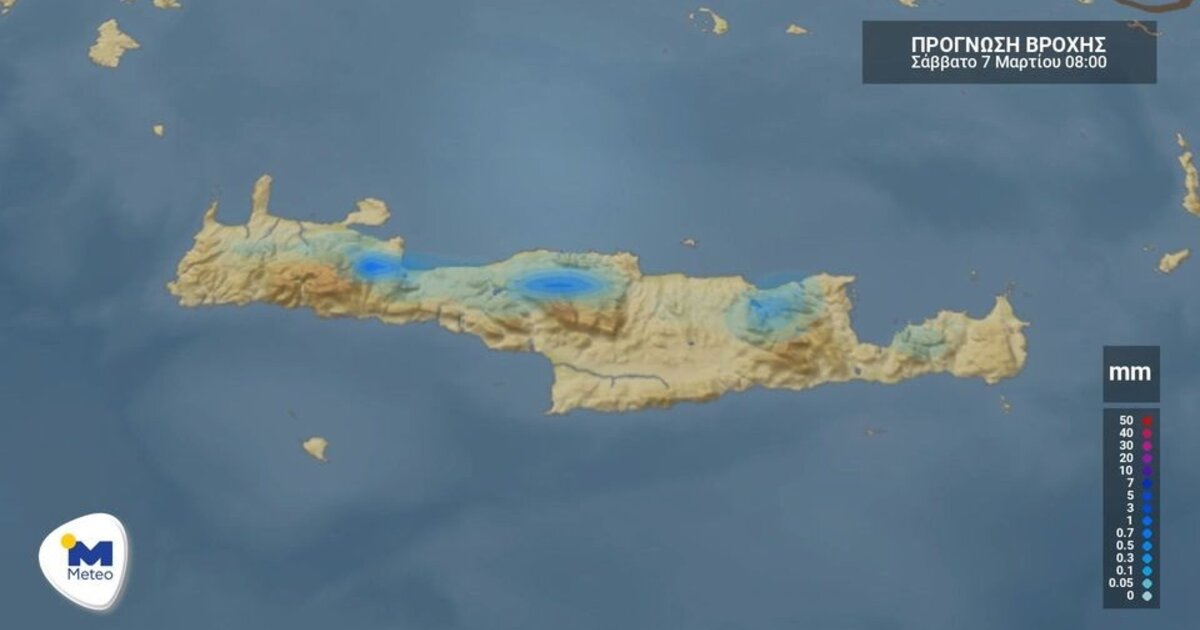 Γενικά αίθριος, με λίγες τοπικές νεφώσεις τις πρώτες πρωινές ώρες, όπου πιθανώς να σημειωθούν ασθενείς τοπικές βροχές, θα είναι αύριο Σάββατο (07/03) ο καιρός στην Κρήτη.