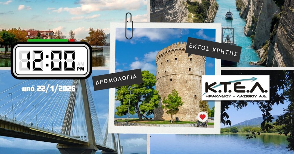 Η ΚΤΕΛ Ηρακλείου Λασιθίου ενημερώνει το επιβατικό κοινό ότι τα δρομολόγια εκτός Κρήτης με αναχώρηση από Θεσσαλονίκη και Ιωάννινα, τα οποία τις προηγούμενες ημέρες εκτελούνταν σε προγενέστερη ώρα λόγω των αγροτικών κινητοποιήσεων, επανέρχονται στην κανονική τους ώρα αναχώρησης.