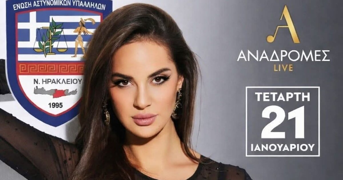 Η Ένωσή Αστυνομικών Υπαλλήλων ν. Ηρακλείου θα πραγματοποιήσει την ετήσια εκδήλωσή της την 21-01-2026 και ώρα 22.00 στο κέντρο διασκέδασης ‘’ Αναδρομές’’ στις Αρχάνες Ηρακλείου, με την Ρία Ελληνίδου και τους συνεργάτες της.