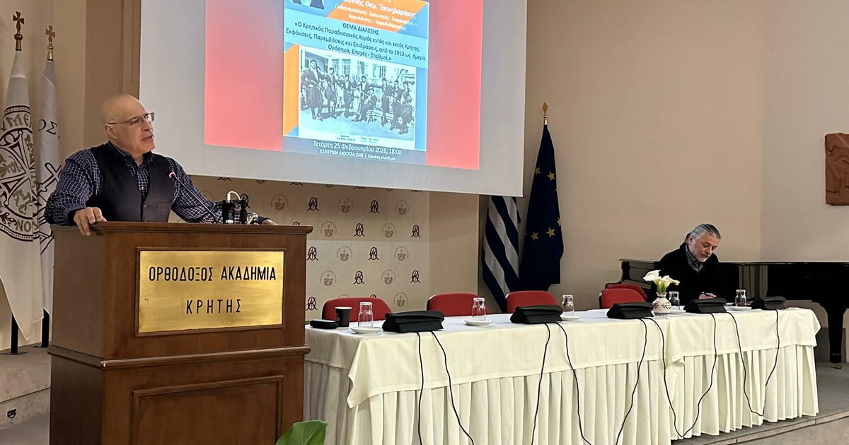 Στις 25 Φεβρουαρίου 2026 έλαβε χώρα στο μεγάλο αμφιθέατρο της ΟΑΚ η δεύτερη εκδήλωση, από τη σειρά Διαλέξεων – Συζητήσεων, με τον γενικό τίτλο «Ο Κρητικός Πολιτισμός σε… Κρίση;». Βασικός ομιλητής ήταν ο κ. Ιωάννης Θεμ. Τσουχλαράκης, Πολιτισμολόγος, Ερευνητής, Χορολέκτης και Χοροδιδάσκαλος. Το θέμα της διάλεξης ήταν «Ο Κρητικός Παραδοσιακός Χορός εντός και εκτός Κρήτης. Εκφάνσεις, Παρεμβάσεις και Επιδράσεις, από το 1913 ως σήμερα. Ορόσημα, Εποχές, Σταθμοί».