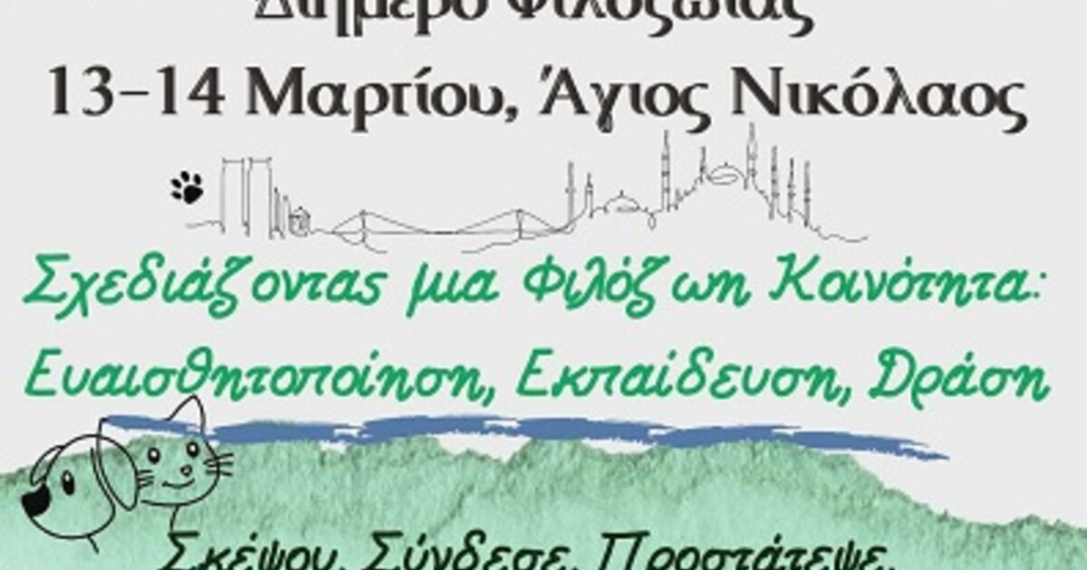 Ο Δήμος Αγίου Νικολάου διοργανώνει την Παρασκευή 13 και το Σάββατο 14 Μαρτίου 2026 διημερίδα αφιερωμένη στη φιλοζωία, με τίτλο «Σχεδιάζοντας μια Φιλόζωη Κοινότητα», αναδεικνύοντας τη σημασία της εκπαίδευσης, της πρόληψης και της συνεργασίας για τη σωστή διαχείριση των αδέσποτων ζώων συντροφιάς.
