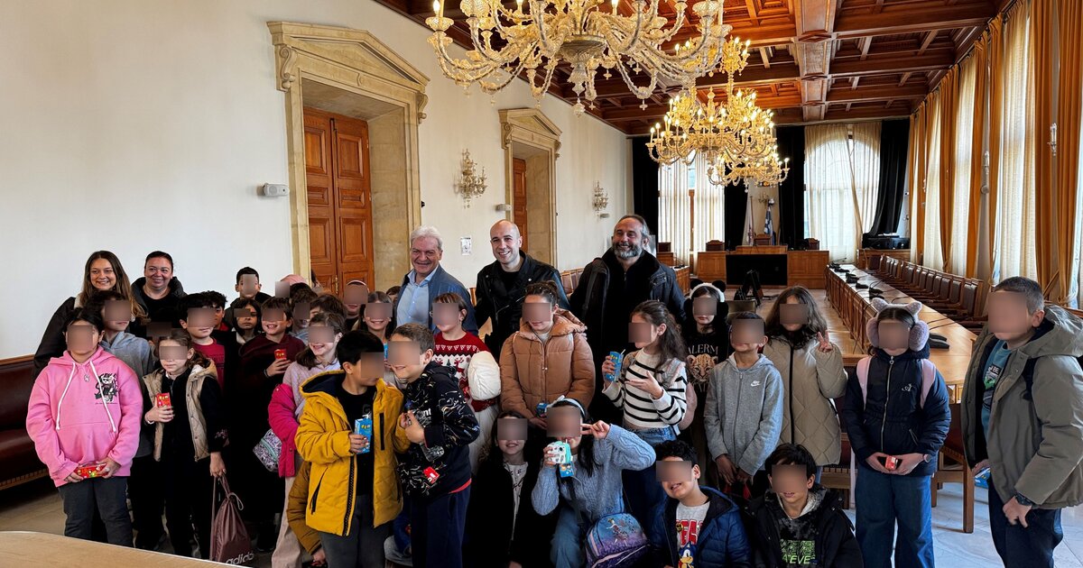 Τα παιδιά της Δ’ Τάξης του 24ου και 31ου Δημοτικού Σχολείου μαζί με τους εκπαιδευτικούς τους, υποδέχθηκε ο Δήμαρχος Ηρακλείου Αλέξης Καλοκαιρινός στην αίθουσα «Ελευθέριος Βενιζέλος» στη Λότζια, το πρωί της Παρασκευής 23/1.