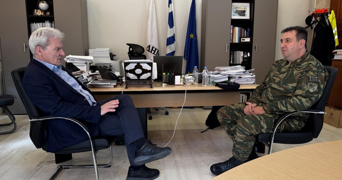 Το νέο Διοικητή της 44ης Στρατιωτικής Διοίκησης ΤΑΛΩΣ (πρώην ΣΕΑΠ) Ταξίαρχο Φώτιο Αρμπή συνάντησε ο Δήμαρχος Ηρακλείου Αλέξης Καλοκαιρινός το πρωί της Παρασκευής 6/2 στη Λότζια.