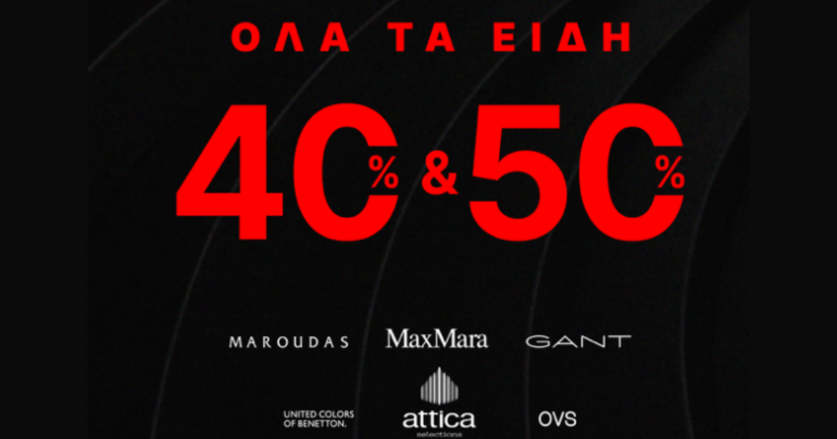 Τώρα όλα τα είδη 40% και 50% OFF!