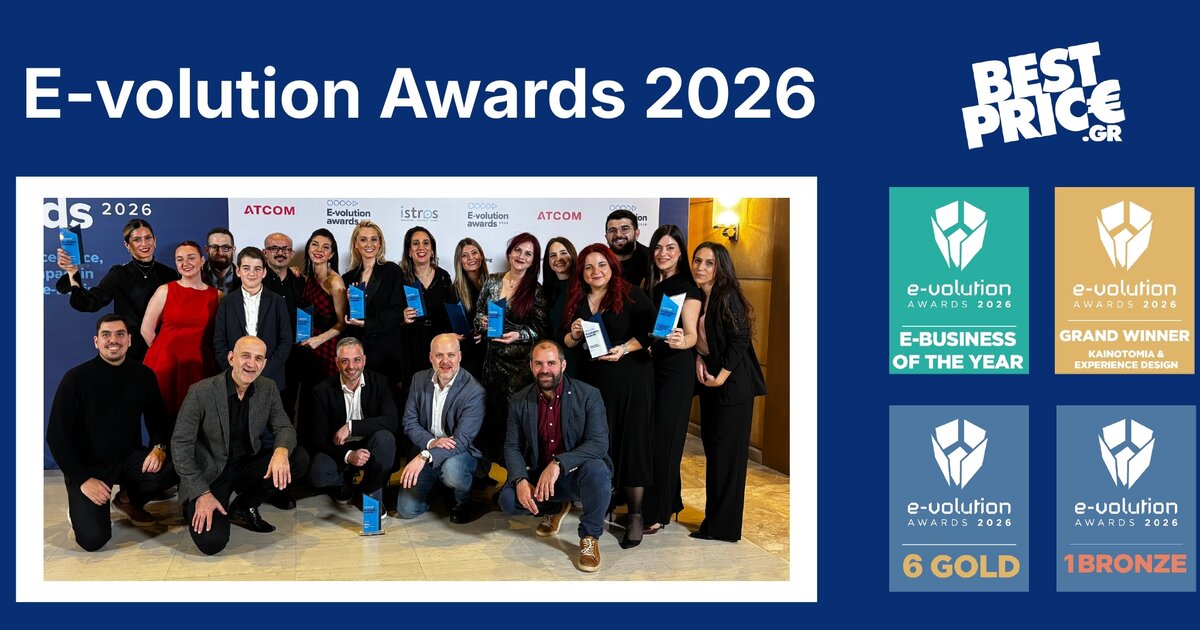 Μια σπουδαία αναγνώριση για το BestPrice στα φετινά E-volution Awards 2026, καθώς τιμήθηκε με τον τίτλο «e-Business of the Year», επιβεβαιώνοντας τον πρωταγωνιστικό του ρόλο στην ψηφιακή καινοτομία.