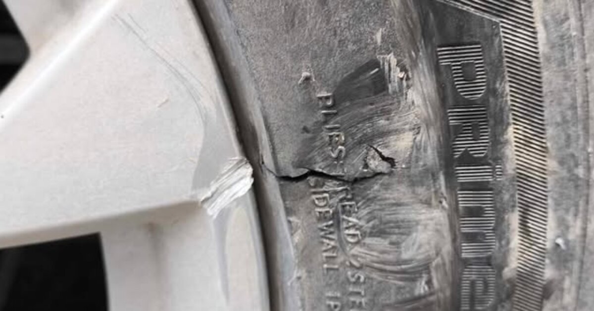 Σήμερα καθώς έφευγα μου έβγαλε ένδειξη το αυτοκίνητο και όταν σταμάτησα στην εθνική είδα το σκίσιμο στο λάστιχο, όπως βλέπετε στη σχετική φωτογραφία. Τα λάστιχα είναι 4 μηνών!