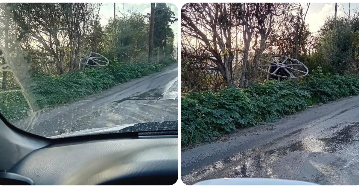 Όπως βλέπετε στις φωτογραφίες που σας στέλνω, ένα μεγάλο στροφείο από καλώδιο, είναι εγκαταλελειμμένο στην οδό Ορακίων.