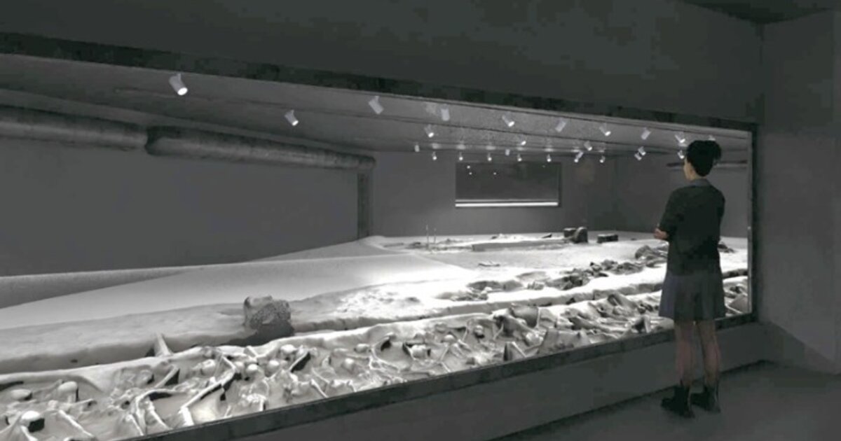 Κατόπιν, μετακινούνται έως την τελική θέση, όπου και θα τοποθετηθούν, υψομετρικά στην θέση που αποκαλύφθηκαν. Οι συστάδες των οστών πρόκειται να τοποθετηθούν εντός κλειστού χώρου προστασίας με ελεγχόμενες συνθήκες, όπου θα διατηρούνται. Μετά την ολοκλήρωση της δεύτερης φάσης κατασκευής, οι συστάδες εγκιβωτίζονται, ολοκληρώνεται η επίχωση, οργανώνεται ο χώρος και σφραγίζεται».