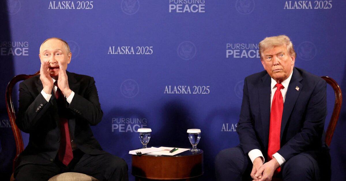 Ενα περίεργο σκηνικό κατέγραψε ο φωτογραφικός φακός μόλις ο Βλαντιμίρ Πούτιν κάθησε διπλα στον Τραμπ, στην αίθουσα Τύπου που στήθηκε στη στρατωτική βάση της Αλάσκας, με τους δημοσιογράφους να του απευθύνουν ερωτήσεις.