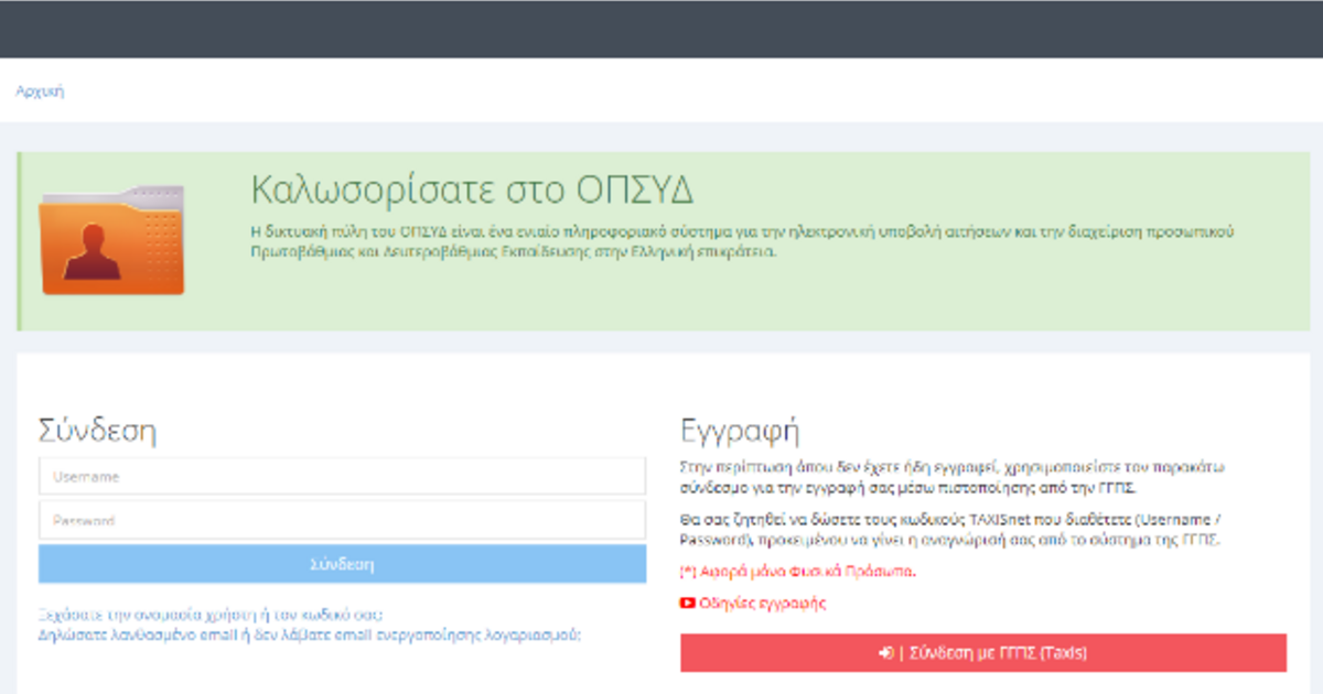 Δείτε το εγχειρίδιο αίτησης υποψηφίων ΟΠΣΥΔ εδώ