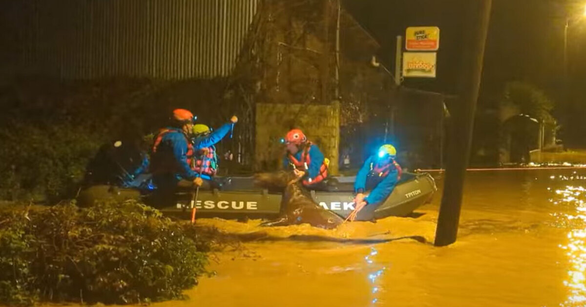 Απεγκλώβισαν άλογο που είχε παγιδευτεί από τις έντονες βροχοπτώσειες στη Φιλιππιάδα - Δείτε βίντεο