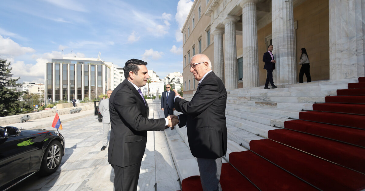 «Την εμβάθυνση της κοινοβουλευτικής διπλωματίας ανάμεσα στην Ελλάδα και την Αρμενία, η οποία βασίζεται ήδη στο εξαιρετικό κλίμα συνεργασίας και αλληλεγγύης ανάμεσα στις δύο χώρες» υπογράμμισαν στην σημερινή συνάντηση στο Μέγαρο του Ελληνικού Κοινοβουλίου, ο πρόεδρος της Βουλής Νικήτας Κακλαμάνης, με τον πρόεδρο της Εθνοσυνέλευσης της Δημοκρατίας της Αρμενίας Alen Simonyan, ο οποίος πραγματοποιεί επίσημη επίσκεψη στην Αθήνα.