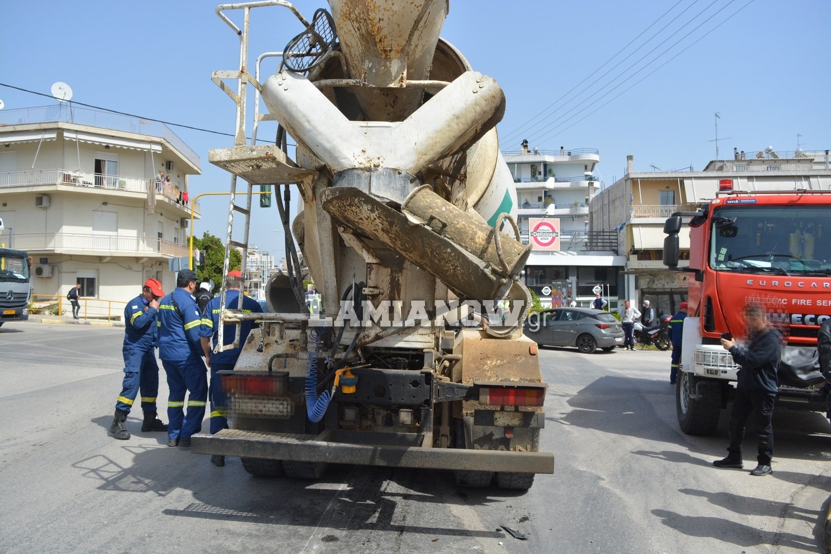 Γυναίκα με μηχανάκι εγκλωβίστηκε κάτω από μπετονιέρα