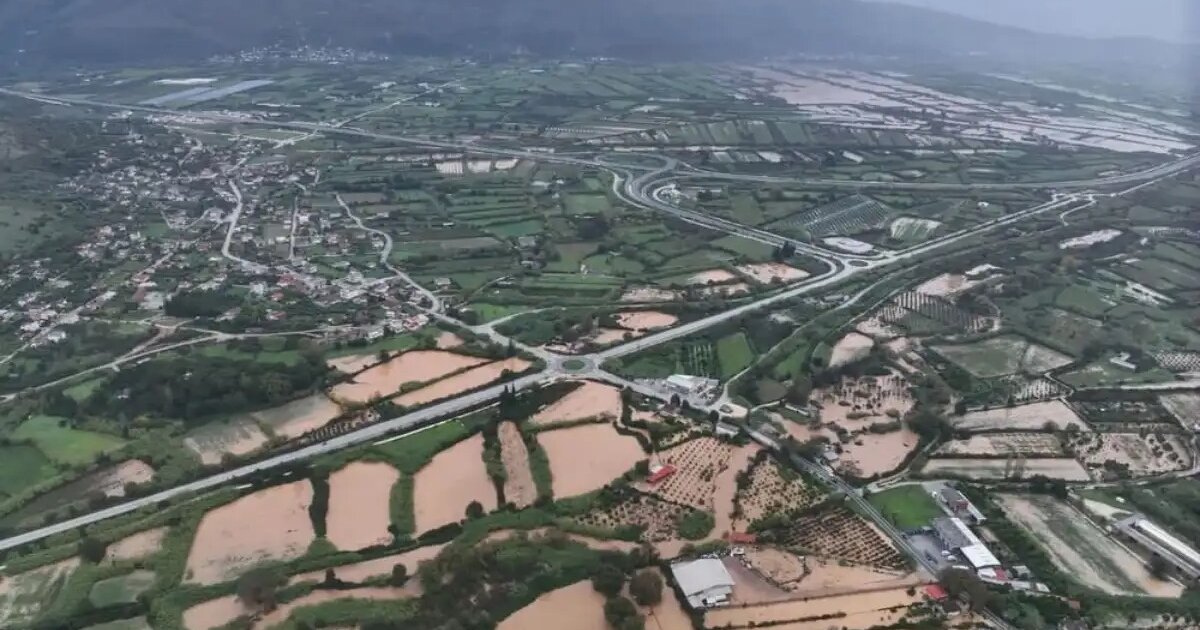 Εικόνες από ψηλά, δείχνουν το μέγεθος της καταστροφής, με τεράστιες εκτάσεις να έχουν μετατραπεί σε μία λίμνη λάσπης προκαλλώντας μεγάλη καταστροφή στις εκτάσεις της περιοχής.