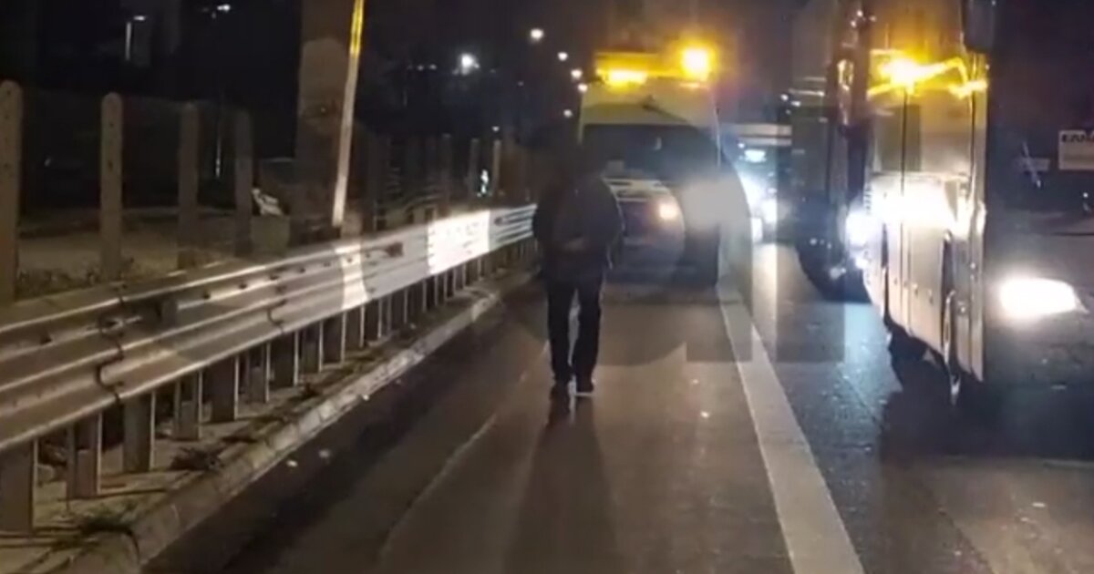 Σε απόσταση αναπνοής από τα ακινητοποιημένα αυτοκίνητα, ένας άνδρας εντοπίστηκε να περπατά ανεξέλεγκτα μέσα στην εθνική οδό, κινούμενος για αρκετά χιλιόμετρα ανάμεσα στα διερχόμενα οχήματα και μάλιστα με ασυνήθιστο βηματισμό.