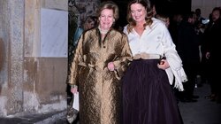 Τα μαλλιά της ήταν πιασμένα χαλαρά και διακοσμημένα με μια τιάρα από τη συλλογή της τέως βασίλισσας 'Αννας Μαρίας.