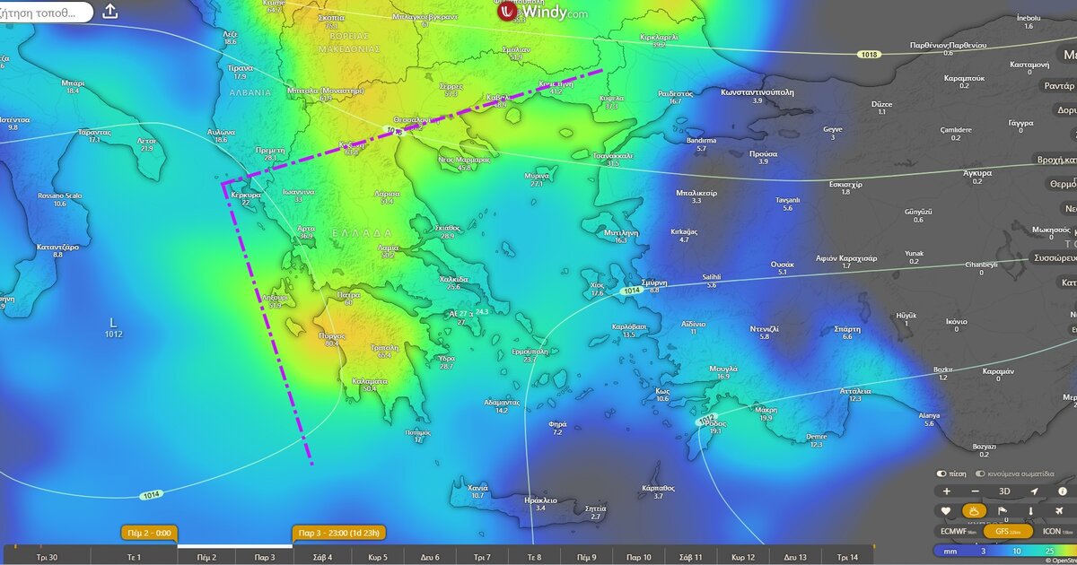 «Το ανώτερο χαμηλό που δημιουργείται στην Αδριατική κίνειται προς την περιοχή μας προκαλώντας πολλές βροχές και καταιγίδες. Τα φαινόμενα θα είναι γενικευμένα και και αύριο θα ξεκαθαρίσουμε ποιές περιοχές θα επηρεαστούν καθώς ακόμη και σήμερα υπάρχουν κάποιες αποκλίσεις . Με άλλα λόγια αυριο θα γνωρίζουμε αν θα προστεθούν το Ανατολικό Αιγαίο και τα Δωδεκάνησα ή αν μείνουν τα δυτικά και βόρεια με τα πιο έντονα φαινόμενα».