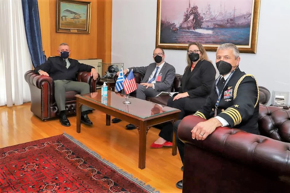 Συγκεκριμένα ο Στρατηγός Κωνσταντίνος Φλώρος συναντήθηκε στο γραφείο του με τον Αναπληρωτή Βοηθό Υπουργού Άμυνας των ΗΠΑ για Θέματα Διεθνούς Ασφάλειας κ. Ilan Goldenberg και την Αναπληρώτρια Βοηθό Υπουργού Εξωτερικών των ΗΠΑ στο Γραφείο Ευρωπαϊκών και Ευρασιατικών Υποθέσεων κ. Erika Olson, που συνοδεύονταν από τον κ. Goshi Vivek στέλεχος του Πολιτικού Τμήματος της Πρεσβείας των ΗΠΑ στην Ελλάδα και τον ΑΚΑΜ των ΗΠΑ στην Ελλάδα Captain Michael E. Biery (USN).