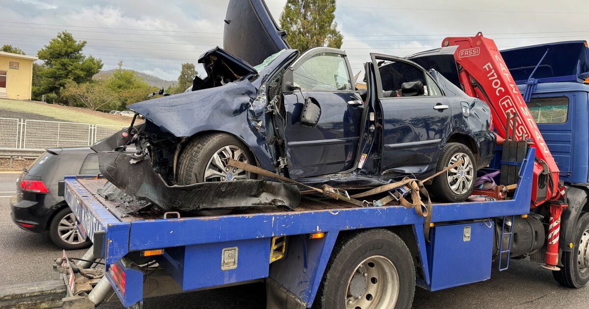 Το όχημα πέρασε στο αντίθετο ρεύμα κυκλοφορίας και συγκρούστηκε μετωπικά με δεύτερο, μαύρο Ι.Χ. στο οποίο επέβαινε ένα άτομο. Η σύγκρουση ήταν σφοδρότατη, με αποτέλεσμα δυο άνθρωποι να χάσουν τη ζωή τους και άλλοι τέσσερις να τραυματιστούν, τρεις εκ των οποίων σοβαρά.