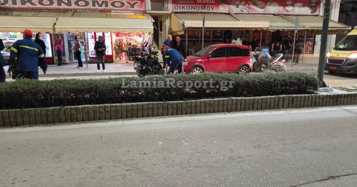Τροχαίο στη Λαμία: Μηχανή προσπάθησε να αποφύγει πεζή και έπεσε πάνω σε αυτοκίνητο