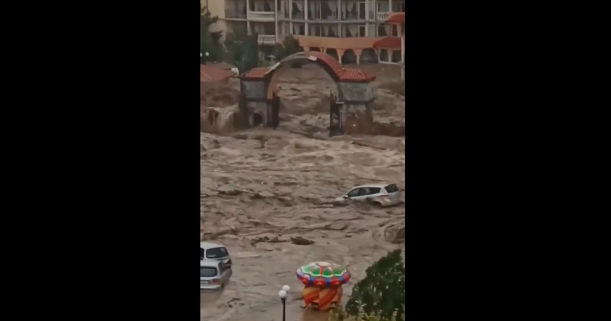 Το ακραίο καιρικό φαινόμενο έπληξε το παραθαλάσσιο θέρετρο Ελένιτε στην επαρχία Μπουργκάς της Βουλγαρίας, προκαλώντας σοβαρές πλημμύρες.