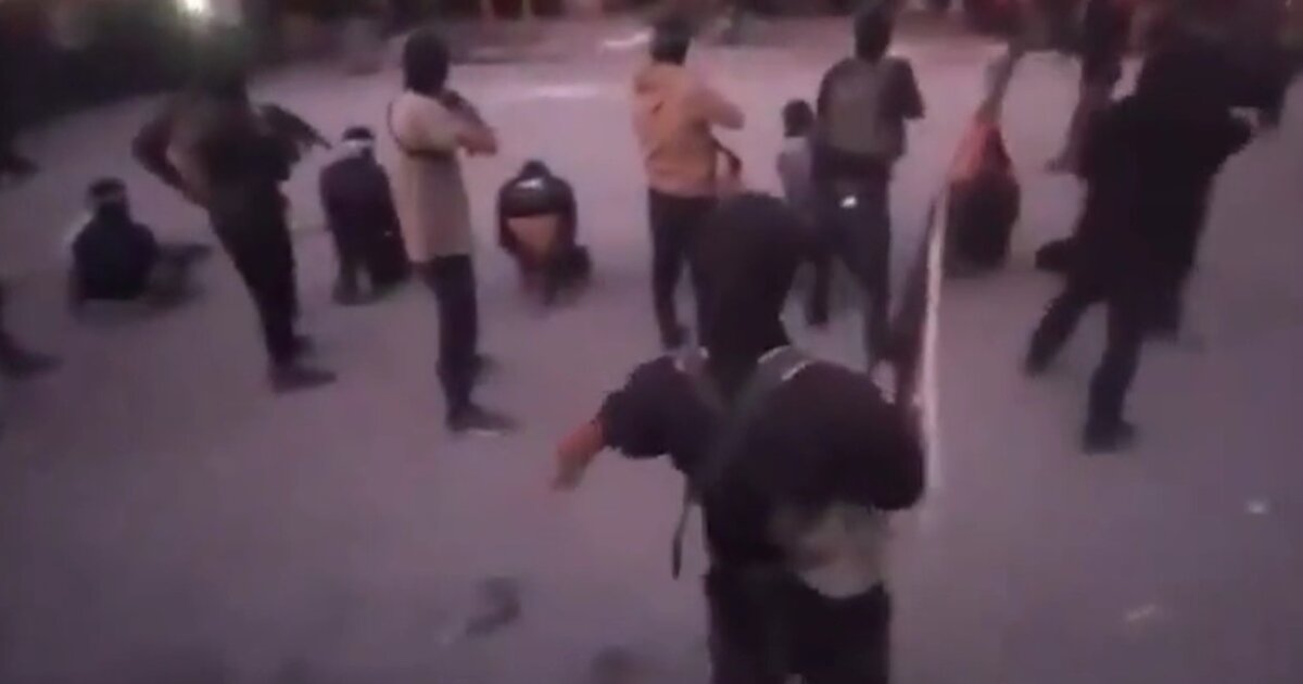 Στο βίντεο-φρίκης φαίνονται οχτώ ξυλοκοπημένοι άνδρες με δεμένα τα μάτια να είναι γονατισμένοι πριν να εκτελεστούν από τους τρομοκράτες της Χαμάς μέσα σε επευφημίες από όσους ήταν παρόντες.