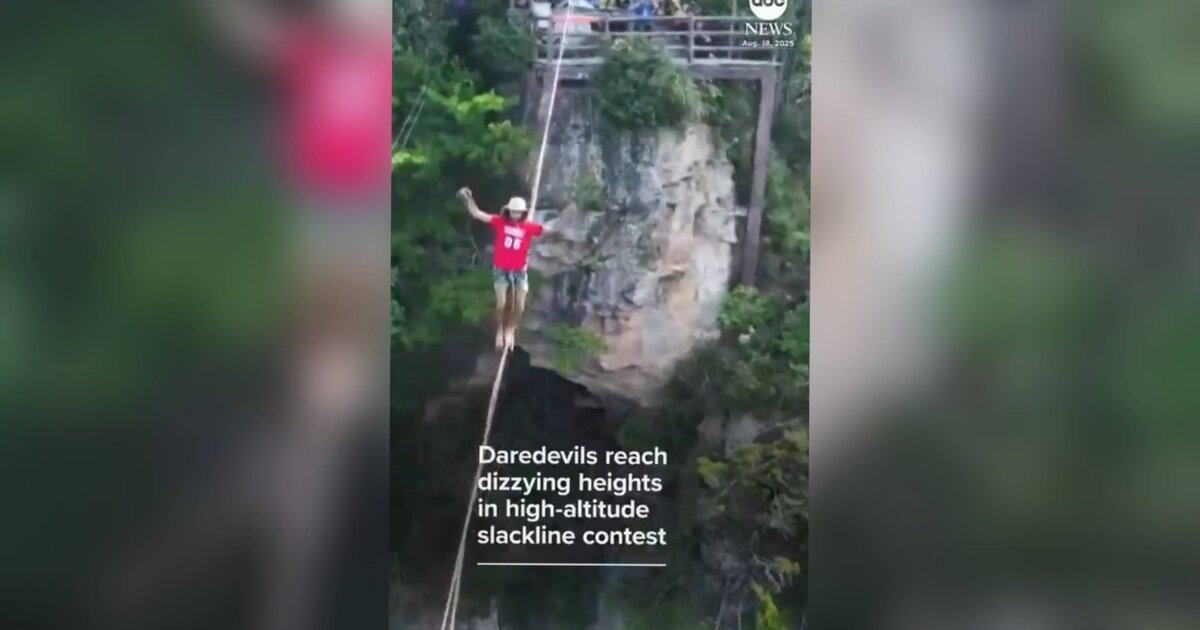 Ισορροπία σε τεντωμένο σχοινί σε ύψος 400 μέτρων – Βίντεο από τον συγκλονιστικό διαγωνισμό στην Κίνα