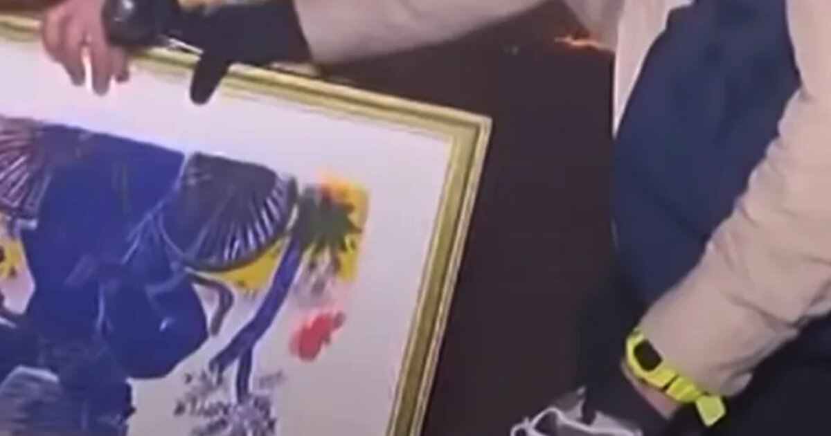 Ένας από τους πίνακες ήταν του Έλληνα ζωγράφου Αλέκου Φασιανού. Πρόκειται για το έργο «Ποδηλάτης στην εξοχή».