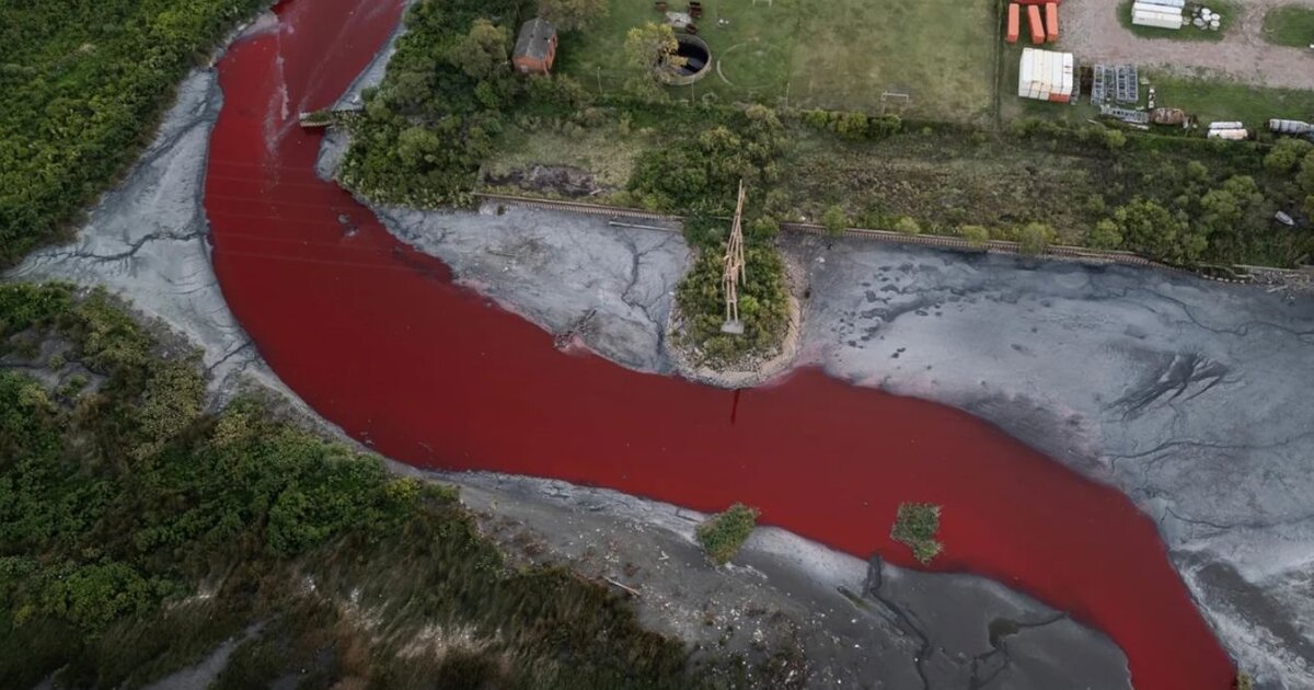 Ένας μικρός ποταμός στην Αργεντινή βάφτηκε σε μια βαθιά κόκκινη απόχρωση την Πέμπτη μετά από διαρροή χρωστικής από κοντινό εργοστάσιο.