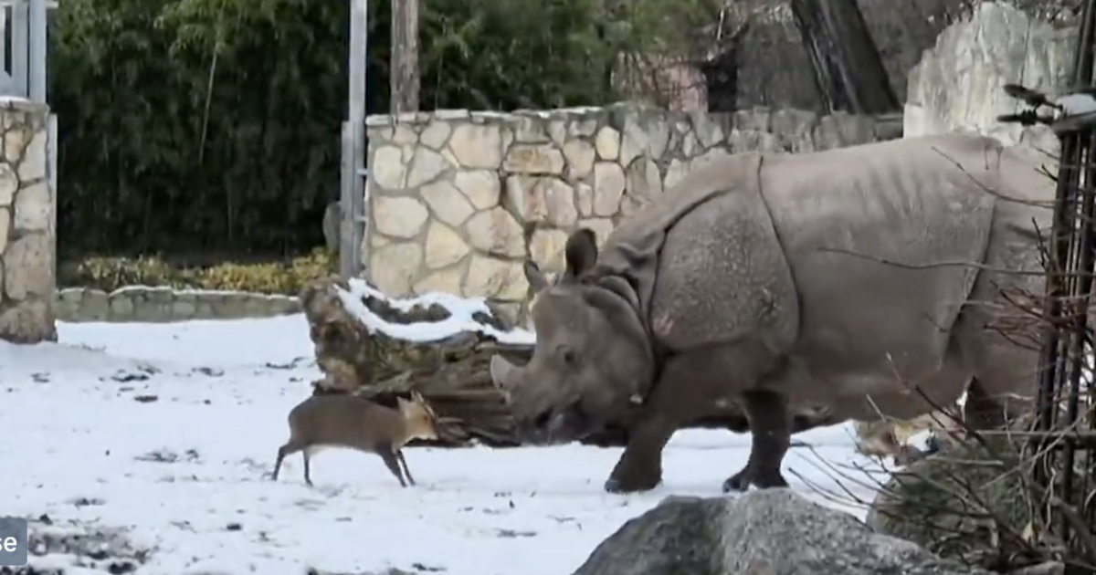 Όταν ο Δαβίδ (ελάφι) τα έβαλε με τον Γολιάθ (ρινόκερο): Το βίντεο από ζωολογικό κήπο της Πολωνίας που έγινε viral