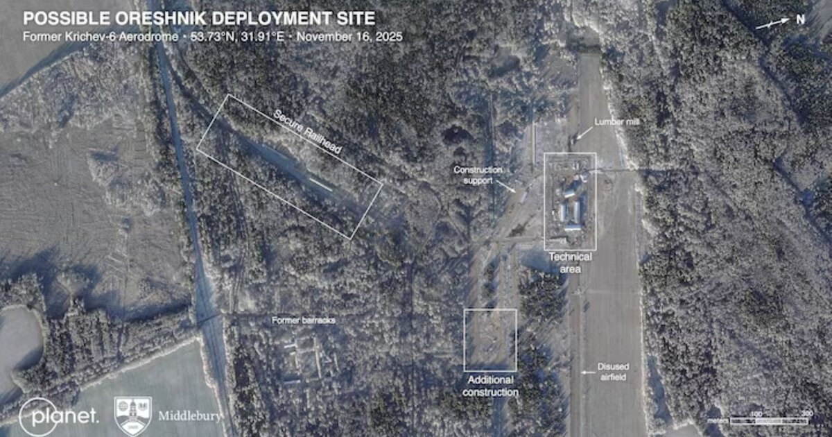 Ο Ρώσος πρόεδρος Βλαντίμιρ Πούτιν έχει δηλώσει σαφώς την πρόθεσή του να τοποθετήσει πυραύλους μεσαίου βεληνεκούς Oreshnik, με εκτιμώμενο βεληνεκές έως 3.400 μίλια (5.500 χλμ.), στη Λευκορωσία, αλλά η ακριβής τοποθεσία δεν έχει ανακοινωθεί μέχρι στιγμής.