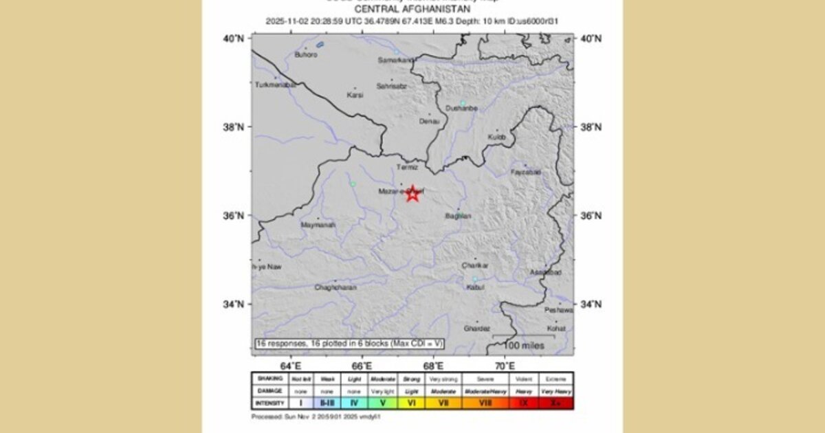 Ο σεισμός, που σημειώθηκε λίγο πριν από τις 22:30 (ώρα Ελλάδας) στη Χολμ, στην επαρχία Σαμανγκάν, σε μικρή απόσταση από τη Μαζάρ-ι-Σαρίφ, εκτιμάται πως έγινε σε βάθος 28 χιλιομέτρων, σύμφωνα με αναθεωρημένη εκτίμηση του αμερικανικού ινστιτούτου γεωλογικών μελετών (USGS).