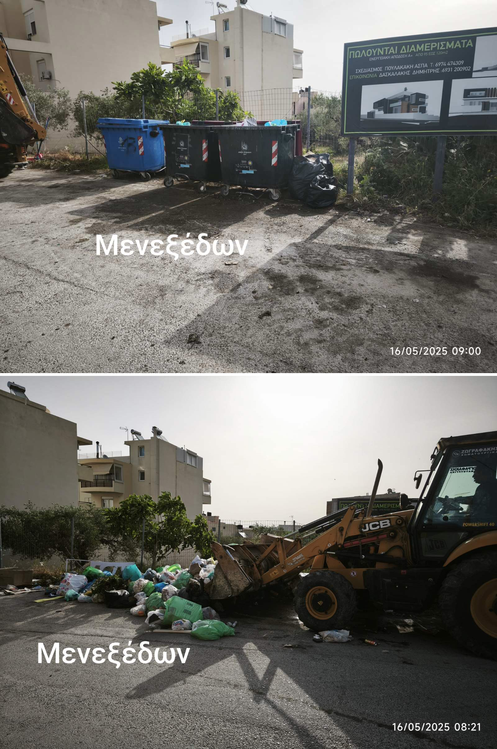 Επισημαίνεται για μια ακόμη φορά ότι η εναπόθεση ογκωδών αντικειμένων (έπιπλα, στρώματα, μπάζα, κ.α.) καθώς και κλαδεμάτων δίπλα σε κάδους, πεζοδρόμια και άλλους κοινόχρηστους χώρους απαγορεύεται. Για την απομάκρυνσή τους, οι πολίτες μπορούν να αξιοποιούν τις δυο εντελώς δωρεάν υπηρεσίες του Δήμου:
