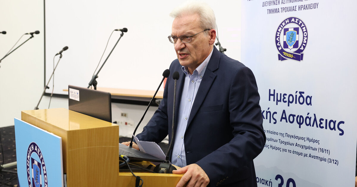 Ο Δήμαρχος Ηρακλείου, τόνισε την ανάγκη να ενισχυθούν οι συνεργασίες και αναφερόμενος στις πρωτοβουλίες που έχει αναλάβει ο Δήμος, πρόταξε την Κανονιστική Πράξη για την αποκατάσταση δρόμων από τις εκσκαφές εταιριών, την μείωση του ορίου ταχύτητας στα 30 χιλιόμετρα εντός αστικού ιστού, τα έργα οδοποιίας καθώς και τις υπερυψωμένες και έξυπνες διαβάσεις: «Ελπίζω ότι αυτή η πρωτοβουλία θα δώσει ώθηση στις συνεργασίες μας. Ειδικότερα, μιλώντας για τον Δήμο Ηρακλείου δεν θα έλεγα απλώς συνεργασία. Θα έλεγα συμμαχία. Στο μέλλον, με την επικείμενη εφαρμογή του Μνημονίου Συνεργασίας Δήμου Ηρακλείου και ΕΛ.ΑΣ. η συνεργασία θα ενισχυθεί, μεταξύ άλλων, και με την λειτουργία του κοινού Επιχειρησιακού Κέντρου. Από την άλλη μεριά έχουμε και παρόμοια προβλήματα. Επιχειρούμε με λίγες δυνάμεις σε σχέση με αυτές που θα χρειαζόταν. Αυτό αφορά και τον Δήμο και την Τροχαία. Χρειάζεται, όπως και γίνεται, σχεδιασμός, εφαρμογή και ο κατάλληλος προγραμματισμός. Ενδεικτικά σας λέω ότι αξιοποιώντας χρηματοδοτικά εργαλεία, ολοκληρώνουμε τις 27 υπερυψωμένες διαβάσεις και είμαστε εν όψει της εγκατάστασης 35 συν 5 έξυπνων διαβάσεων. Παράλληλα εκτελούμε ένα μεγάλης κλίμακας έργο οδοποιίας. Το έργο αυτό, του οποίου τα χαρακτηριστικά προσπαθούμε να βελτιώσουμε, σε πολλές περιπτώσεις εμποδίζεται, καθυστερεί ή και αναστέλλεται από την ανεξέλεγκτη, πρακτικά και θεσμικά, δραστηριότητα των εταιρειών που εγκαθιστούν οπτικές ίνες. Ο Δήμος Ηρακλείου πρωτοπόρησε στην Ελλάδα θεσμοθετώντας μια Κανονιστική Πράξη η οποία έχει δύο κύρια χαρακτηριστικά σε ότι αφορά την αποκατάσταση των δρόμων από τις εκσκαφές για την εγκατάσταση δικτύων: Ισοϋψία και ίδιο συντελεστή τριβής. Είναι προϋποθέσεις Οδικής Ασφάλειας. Αμέσως μετά την δυνατότητα που μας δόθηκε νομοθετικά, καθιερώνουμε το όριο των 30 χιλιομέτρων στο αστικό περιβάλλον του Δήμου και αυτό είναι σημαντικό διότι γνωρίζουμε πόσο η μείωση κατά 20 των χιλιομέτρων του ορίου, υπο-πολλαπλασιάζει τον κίνδυνο των ατυχημάτων».